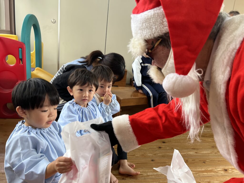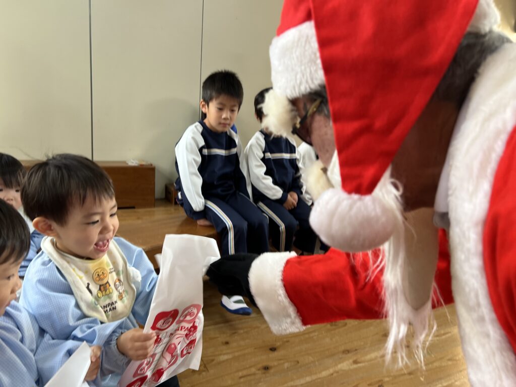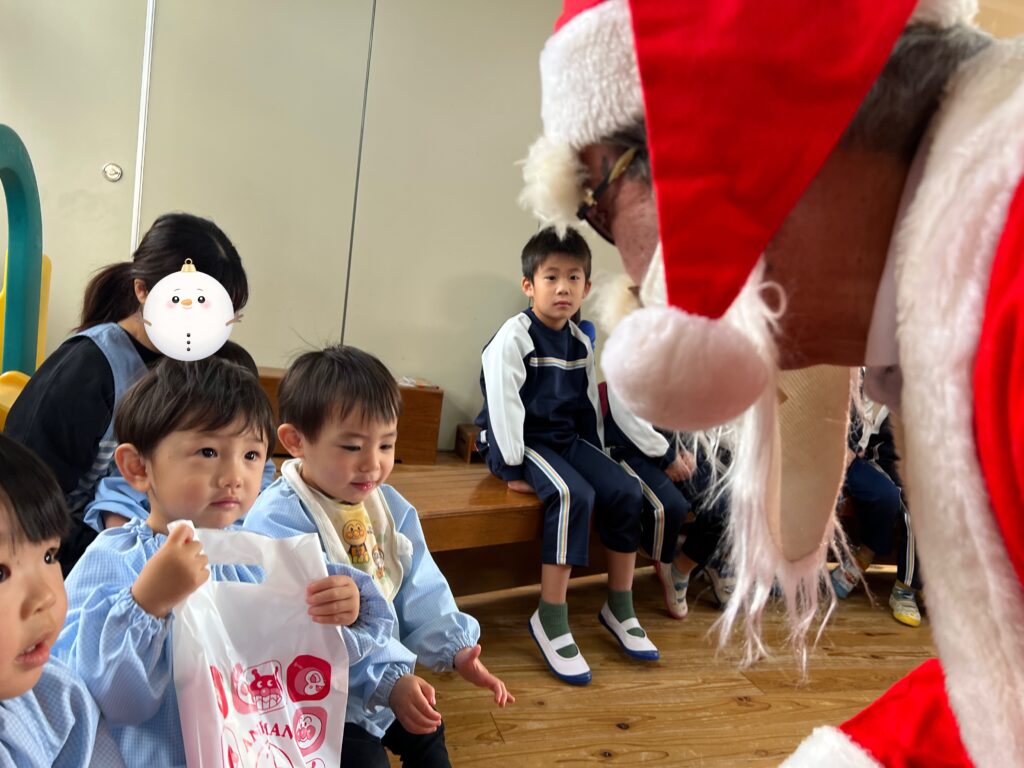 『サンタさーん!』『えっ??だぁれ??(*≧∀≦*)』『ちょっとこわい〜』等、子ども達の反応は様々♪