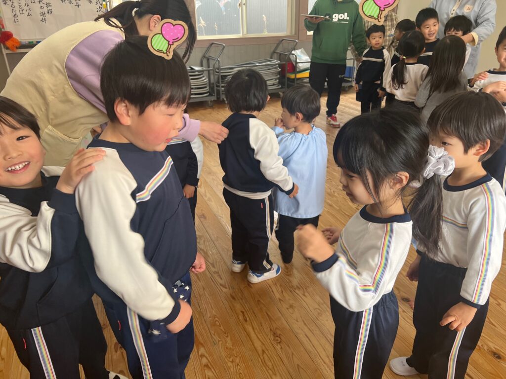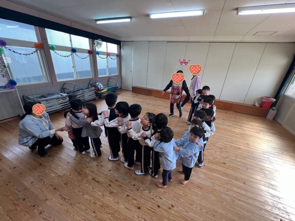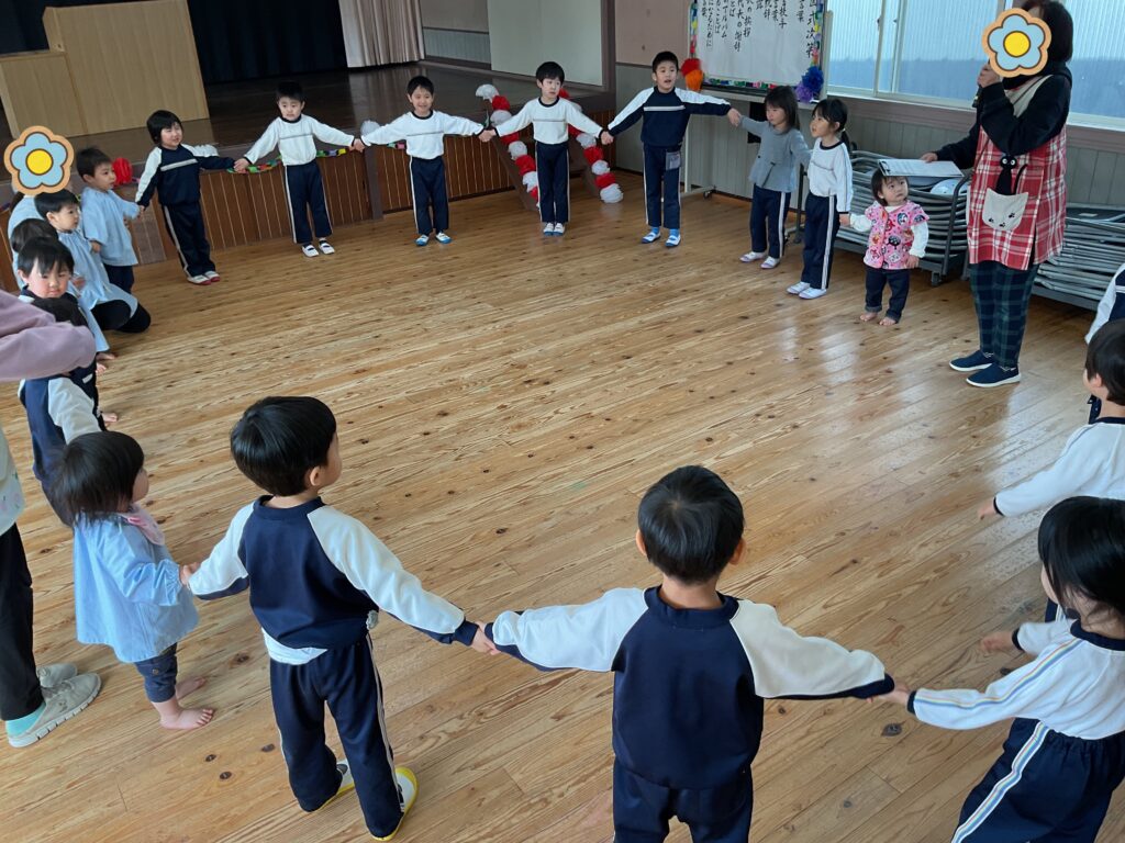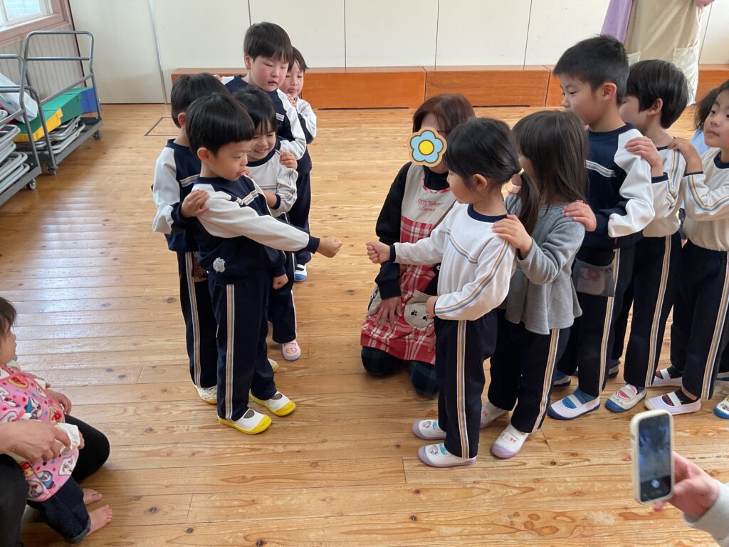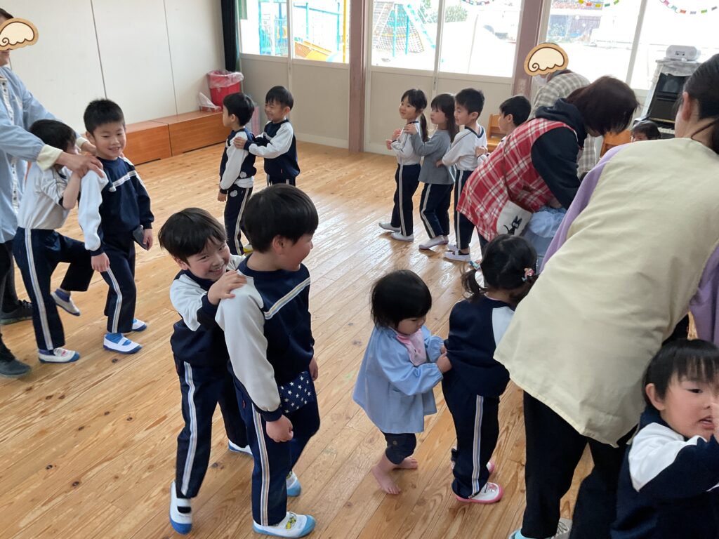 3月13日(金)きりん組さんとのお別れ会。どんぐりこども園のみんなで『じゃんけん列車』をしました☆最後は長〜い列車になって楽しかったです♪